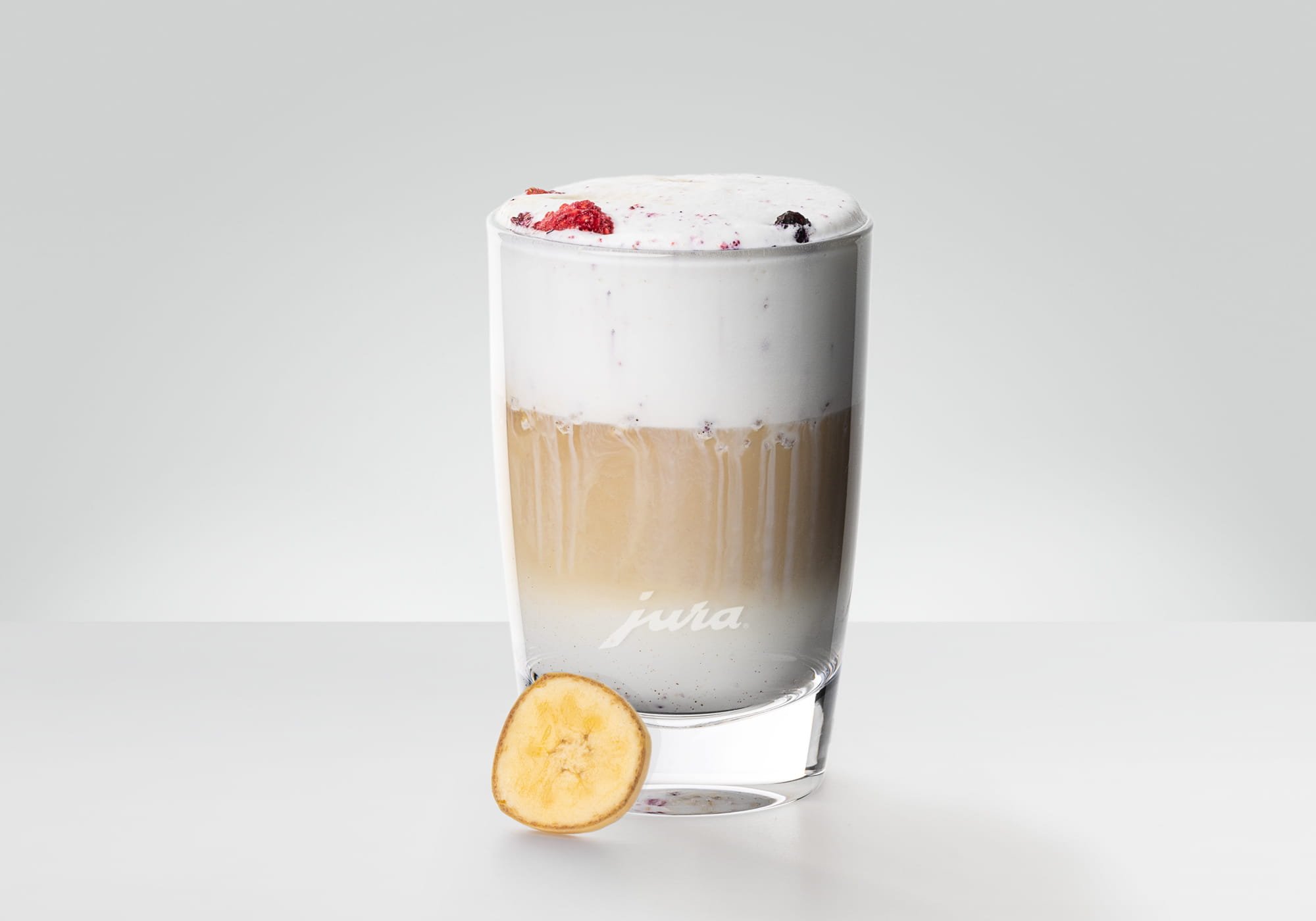 • Pegue num copo de Latte macchiato pequeno e deite aí os muesli.